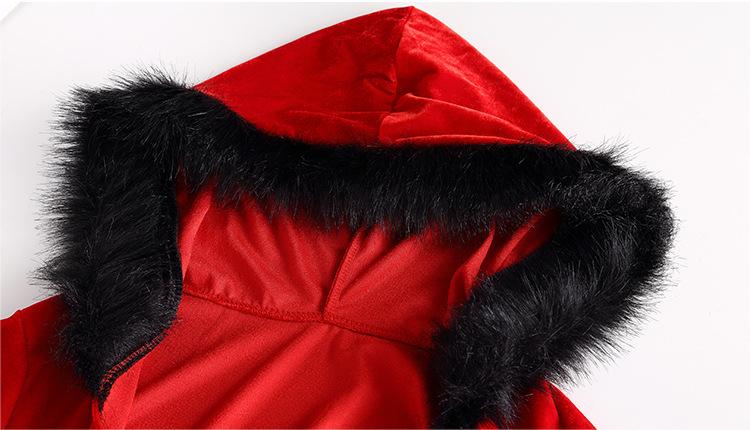 Christmas Clothing Long Sleeve Hooded Furry Christmas Dress with Belt