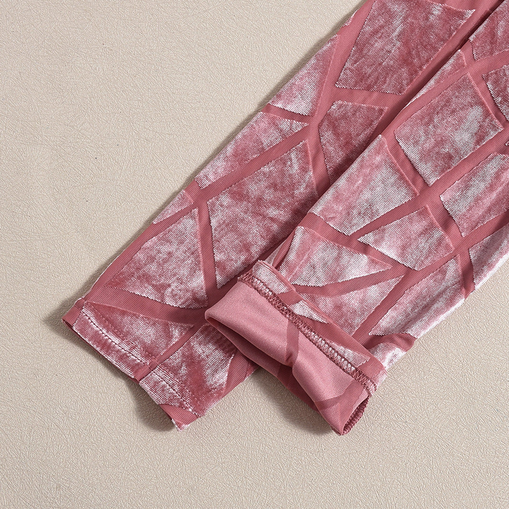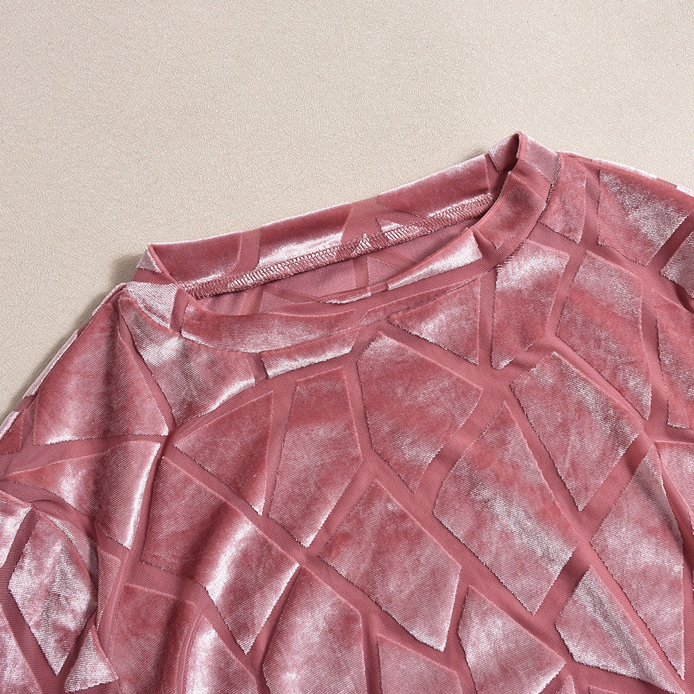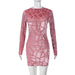 Long Sleeve Flocking Sexy Short Hip Dress