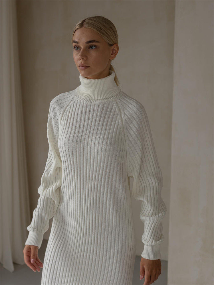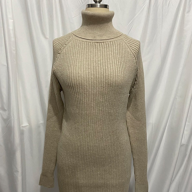 Long Sleeve High Collar Sweater Dress