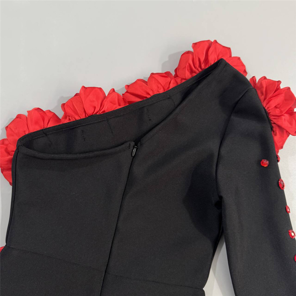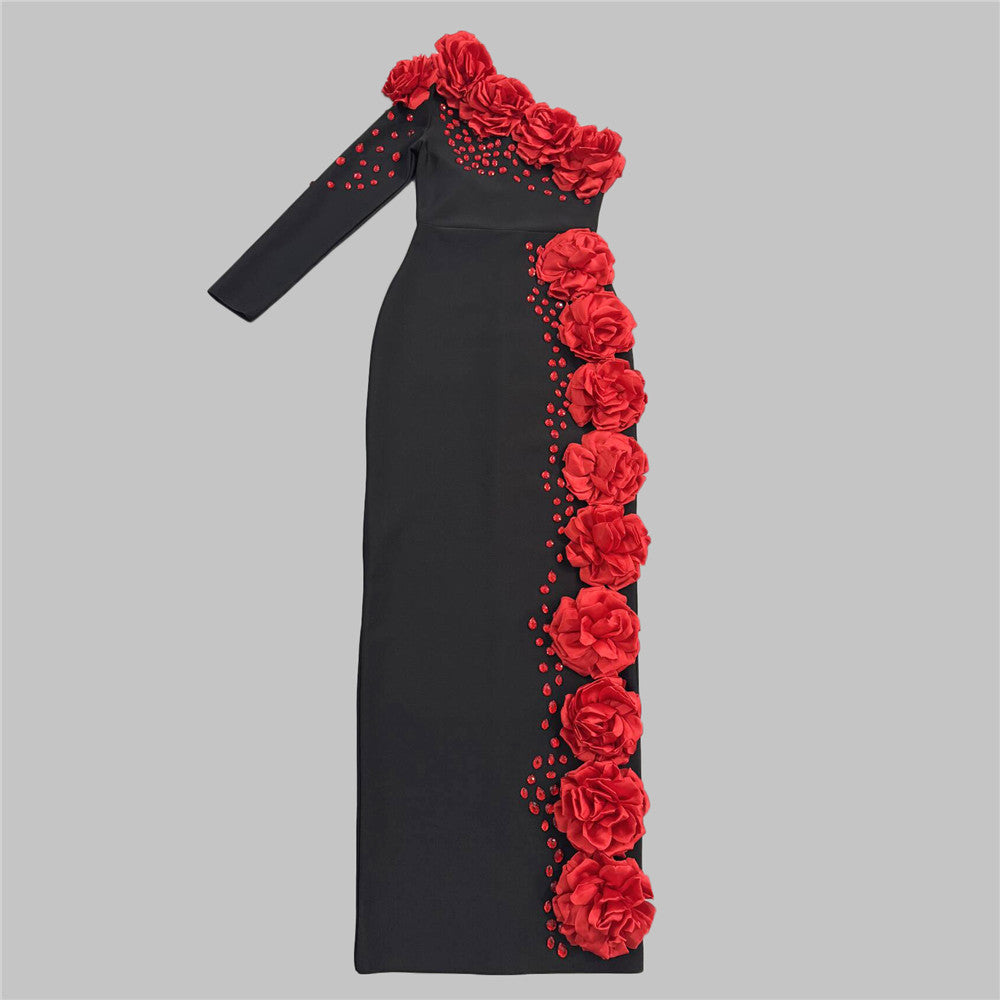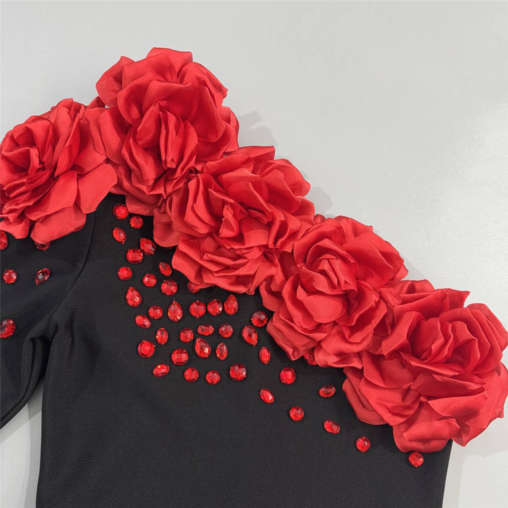 Sexy One Shoulder Beaded Red Floral Bandage Dress