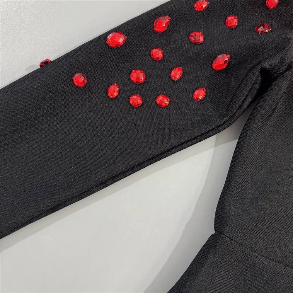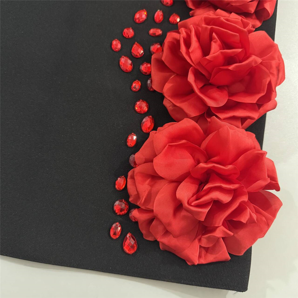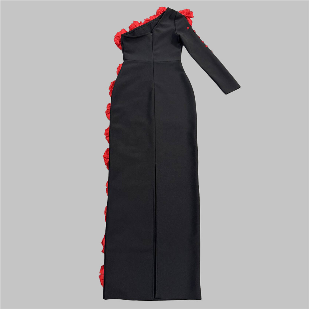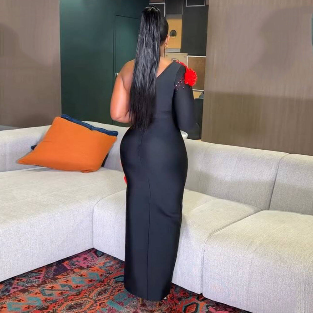 Sexy One Shoulder Beaded Red Floral Bandage Dress