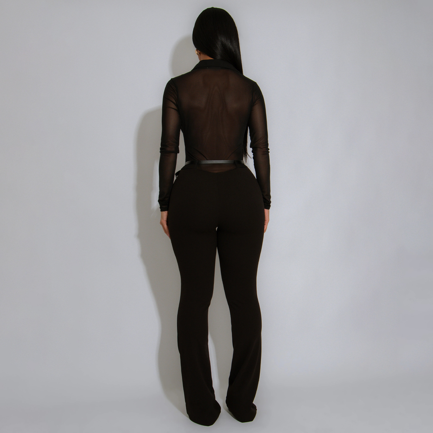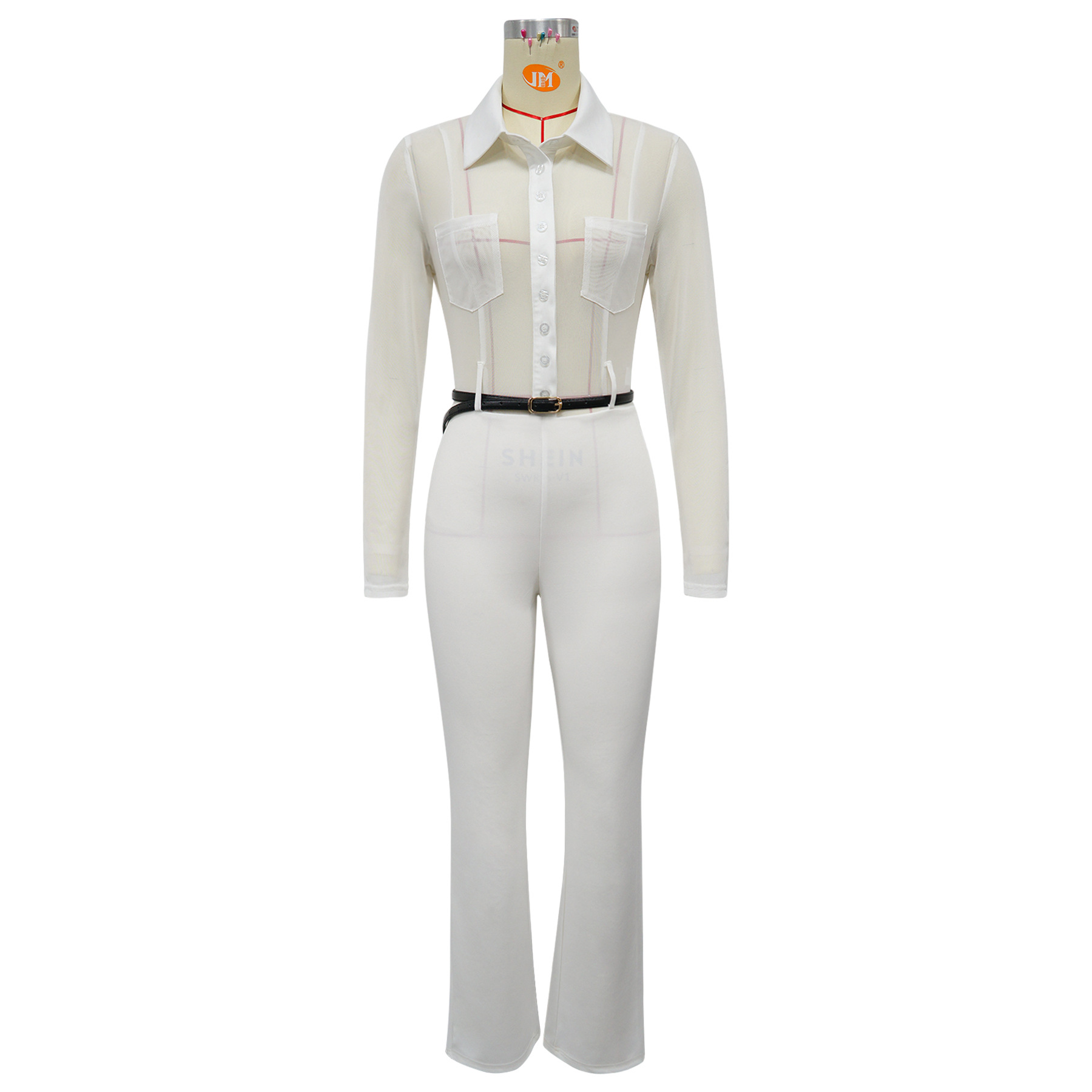 Sexy See through Long Sleeves Tight Jumpsuit Pants