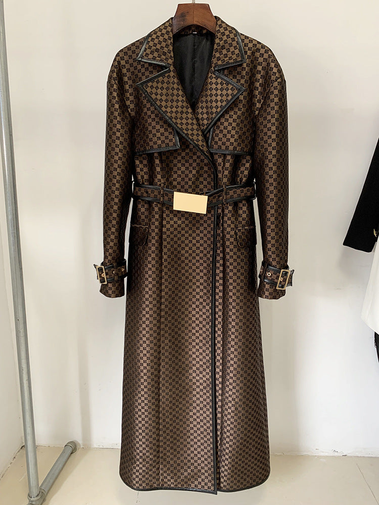 Star Belt Jacquard Maze Pattern Long Trench Coat