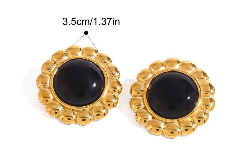 Black Agate Center: A striking natural stone that contrasts beautifully with the gold, adding depth and allure.